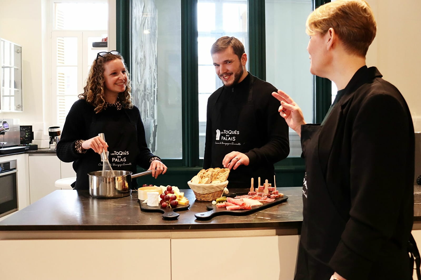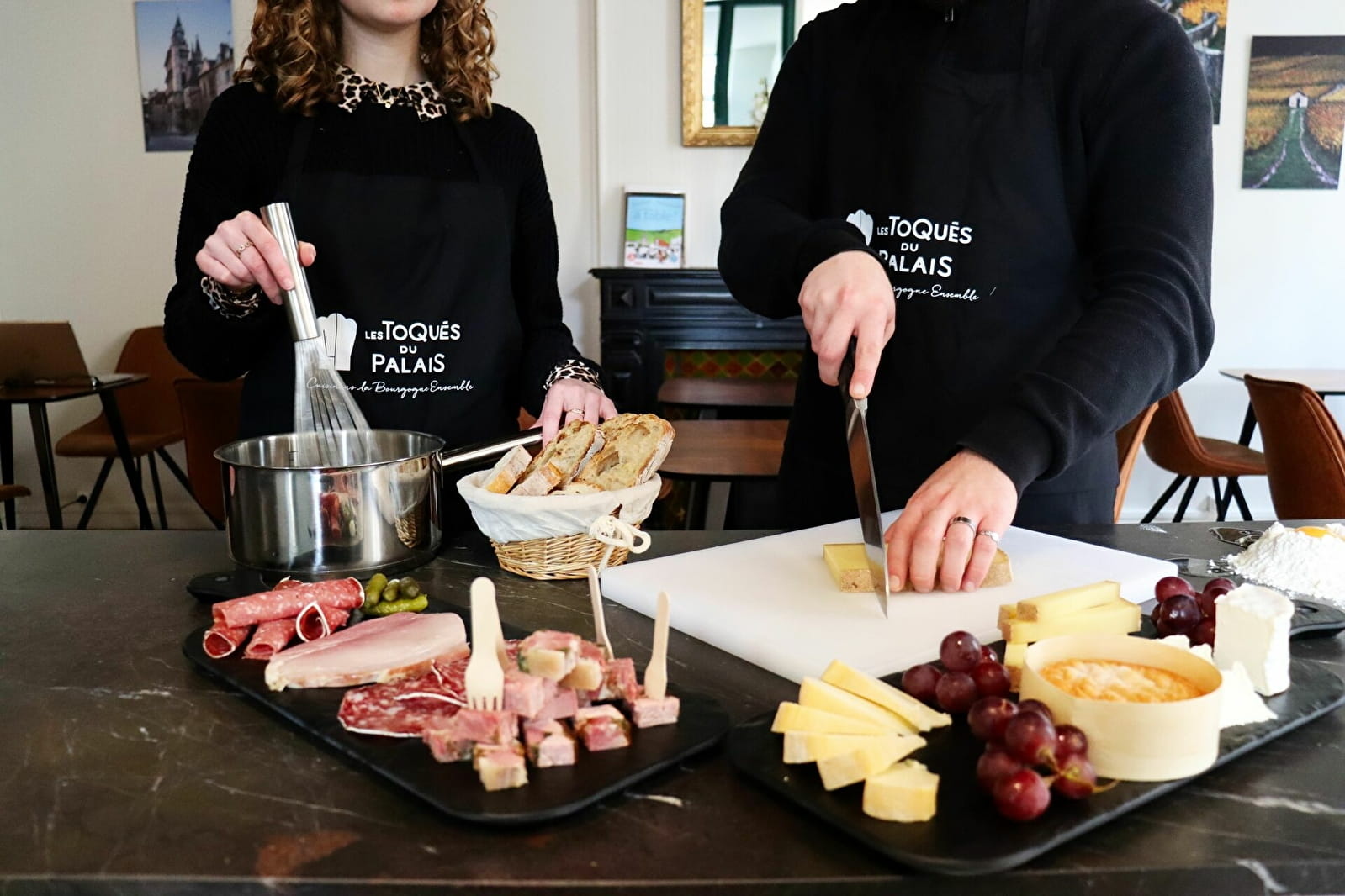 The experience will continue in the recently renovated Cave du Palais, where you will taste the specialities you have made. Three Burgundy wines will be offered for tasting to accompany your meal.