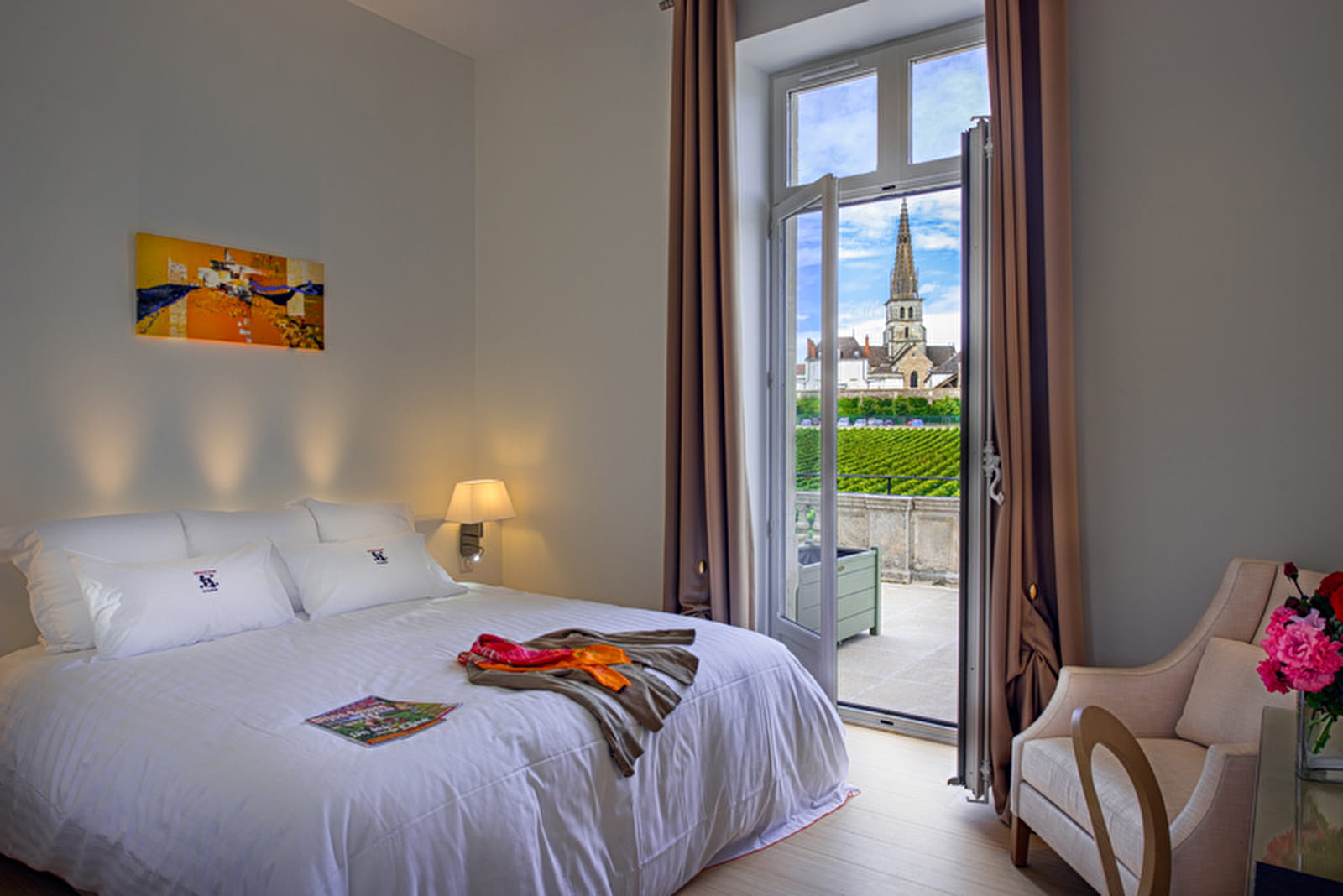 Rated 4 stars, the hotel has 19 rooms with contemporary decor and all the comforts of the 21st century (free wifi in all rooms, air conditioning, private terrace for some rooms with a breathtaking view of the vineyards and the village bell tower).