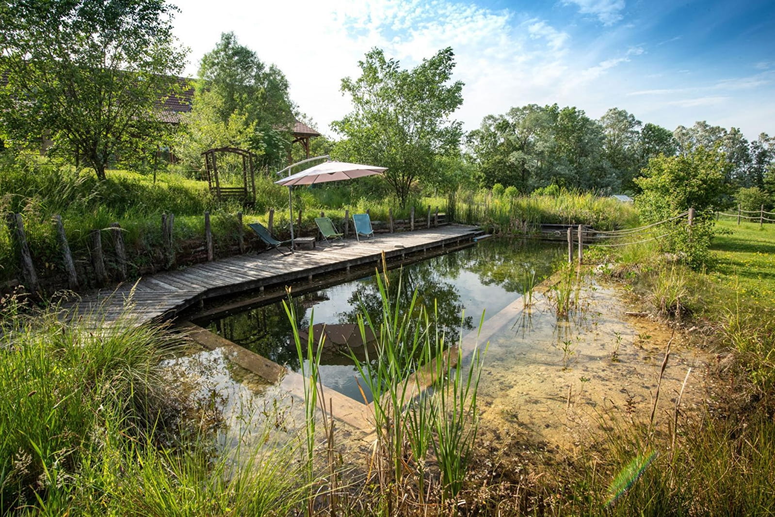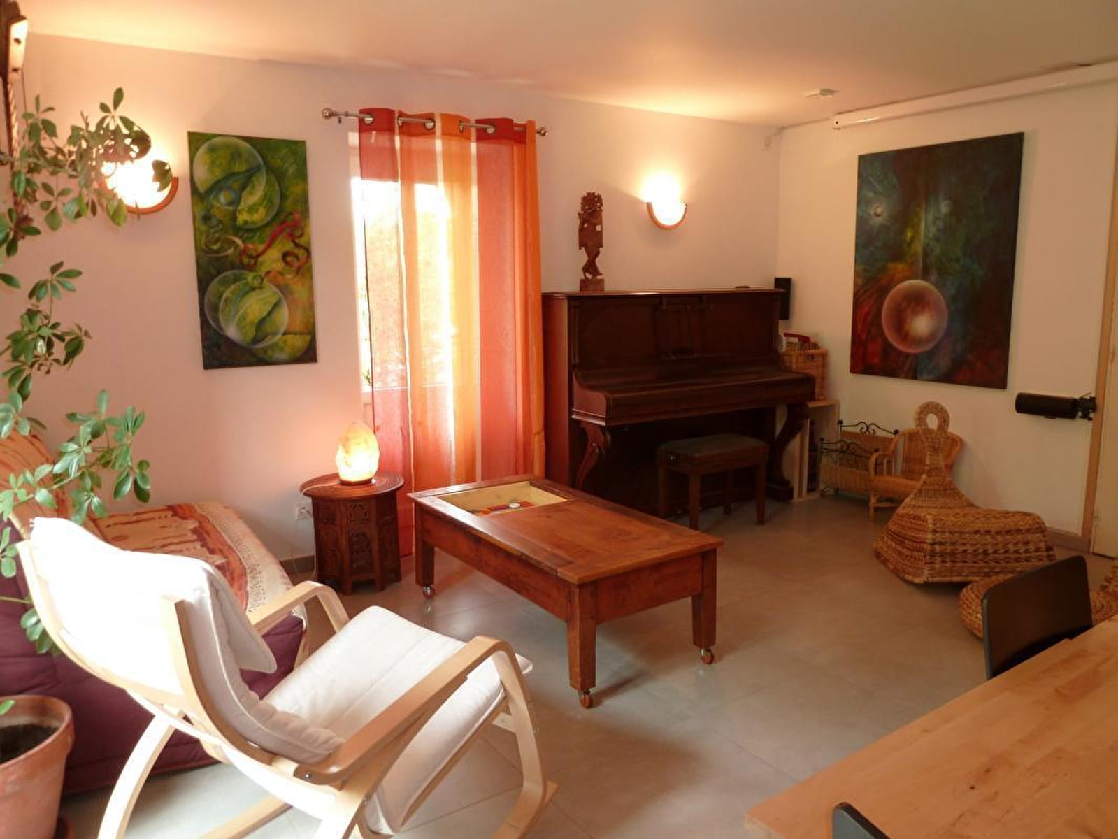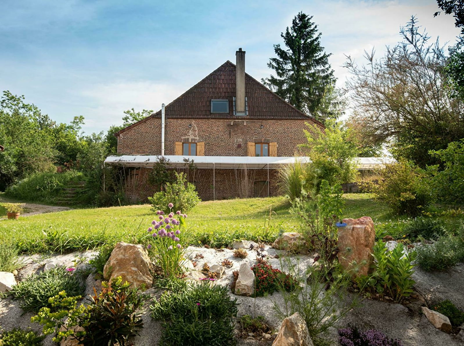 Yvan, expert in eco-construction and Ramatara, yoga teacher, welcome you in an authentic 1882 country house, carefully renovated in a global ecological approach, on a vast natural domain of 7 ha. Peaceful, typical little hamlet nestled in the heart of the Bresse countryside on the banks of the Seille, a remarkable ecosystem classified as a “Natura 2000 zone” (reserve of migratory birds, rare plant species, numerous fish including the famous catfish, animals and wildlife, etc.) . Nestled in the hollow of a pleasant, unspoiled setting of nature and greenery on the edge of meadows & forests, landscaped in a spirit of permaculture and "micro farm" without nuisance (donkey, pony, chickens, ducks, geese, beehives ...), the The property has a natural bathing area (shared), a wellness room with hammam & massage room (paid professional services) and a hiking trail in the forest. Warm country character, cozy and cozy. Zen and gentle atmosphere. Large exposed and shaded gravel terrace adjoining a private garden.
