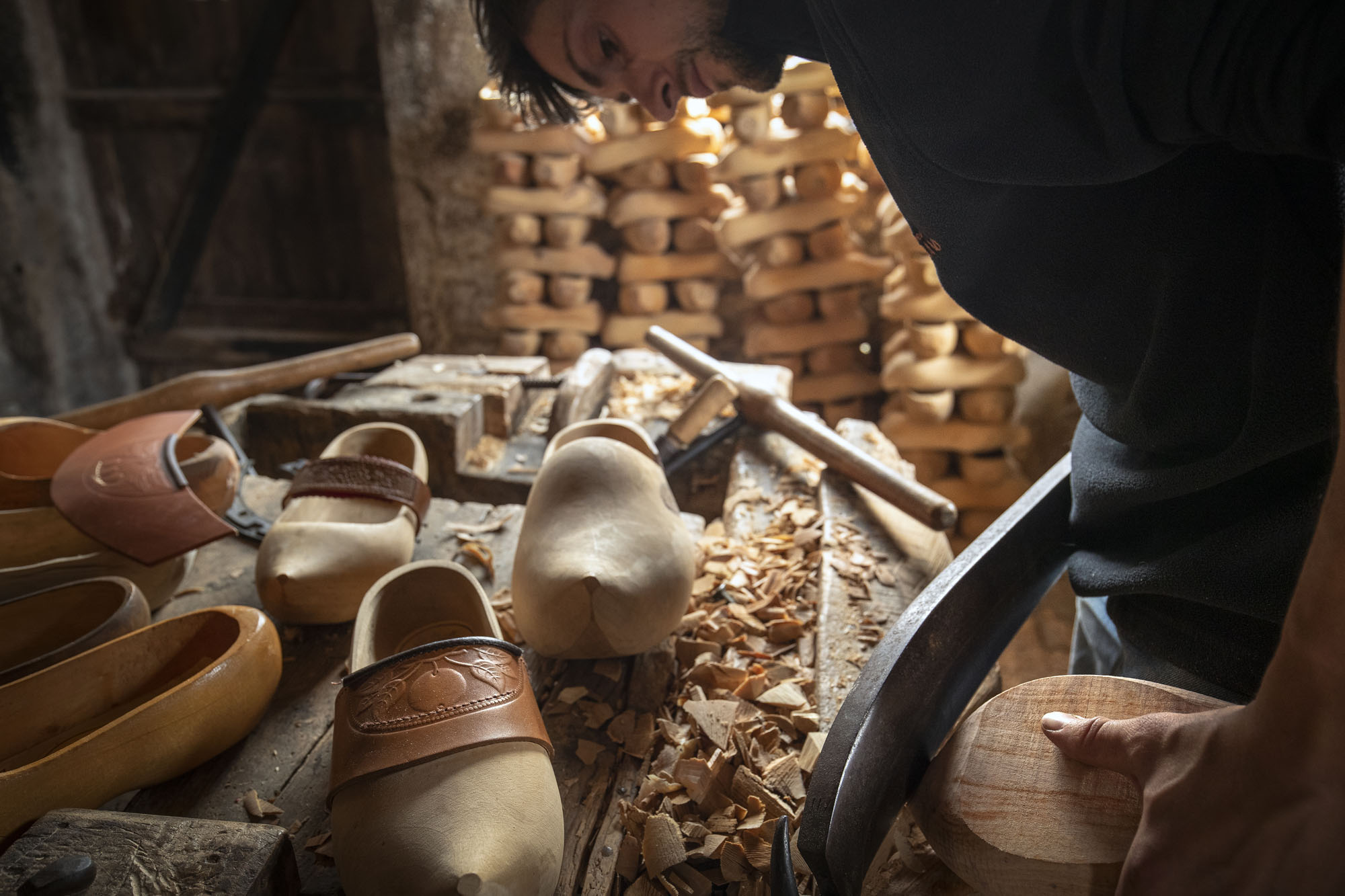 Clogs are made here using traditional methods. The wood is shaped and carved using machines that were built in the 19th century, and finishing touches are then added by hand. The result? Wonderful, traditional creations decorated with pretty detailing