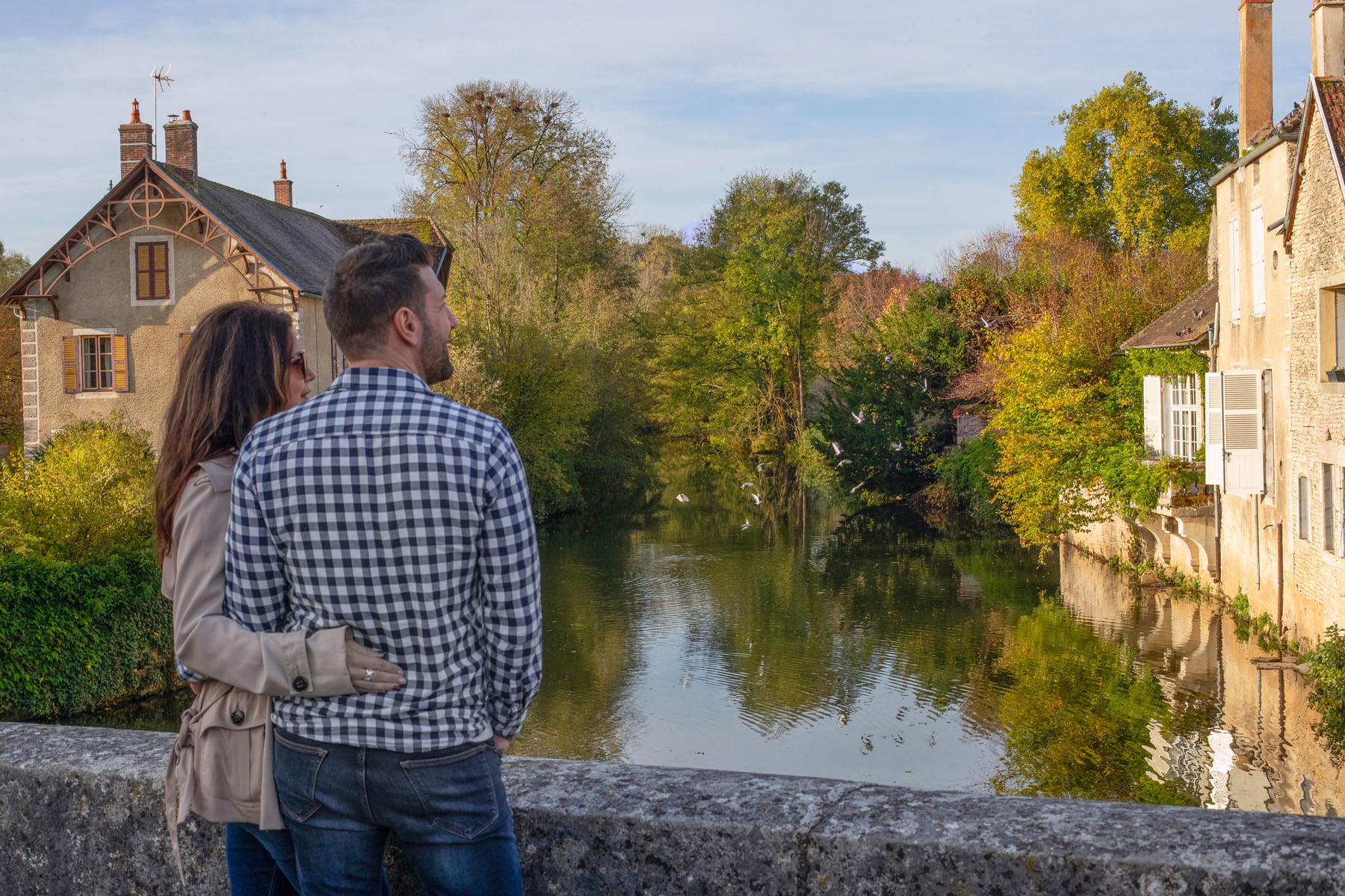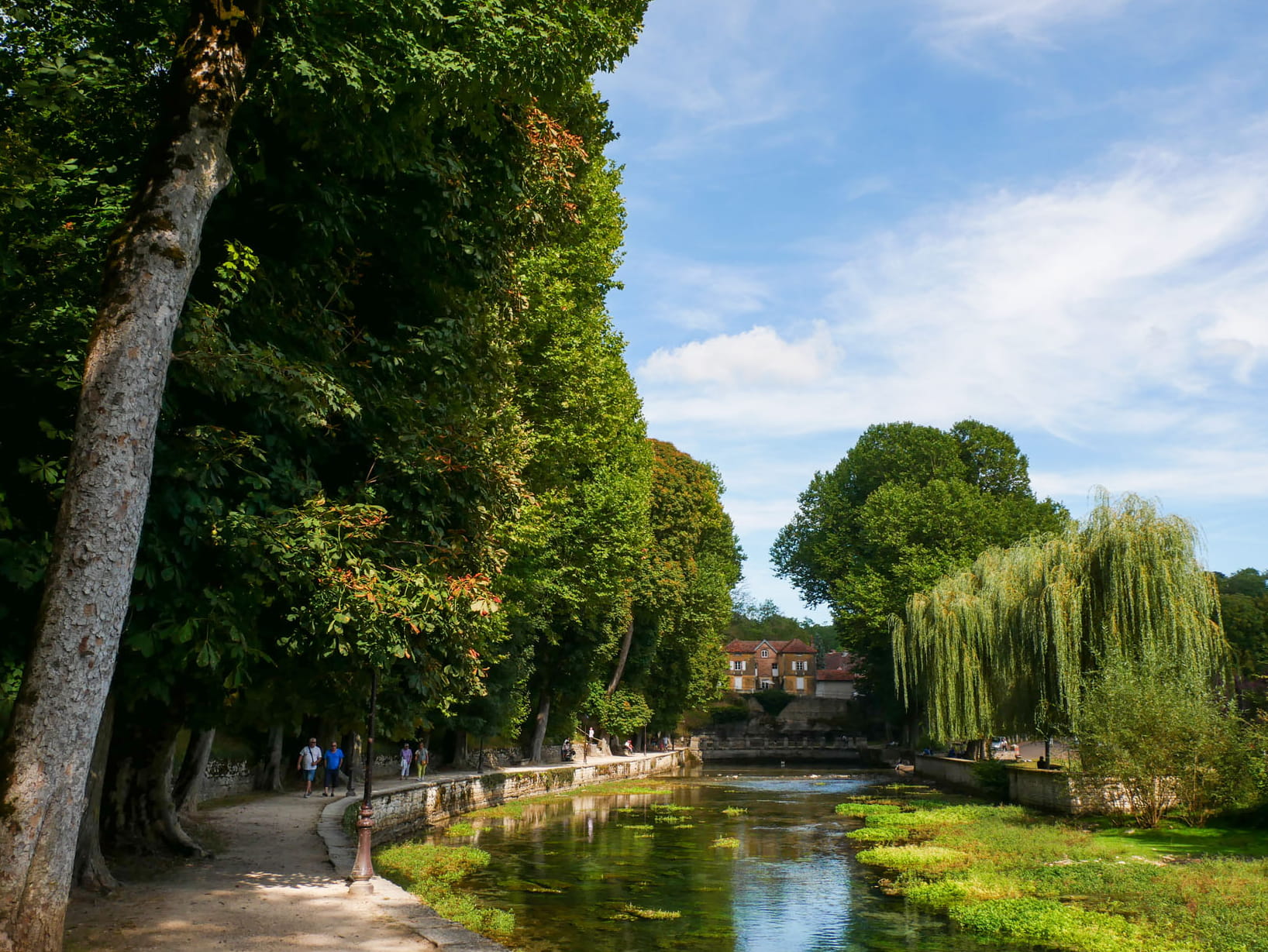 Walk hand in hand along the 'promenade de la source' lined with ancient trees, then cross the lovely stone bridge to admire the gorgeous semi-circular washhouse.
