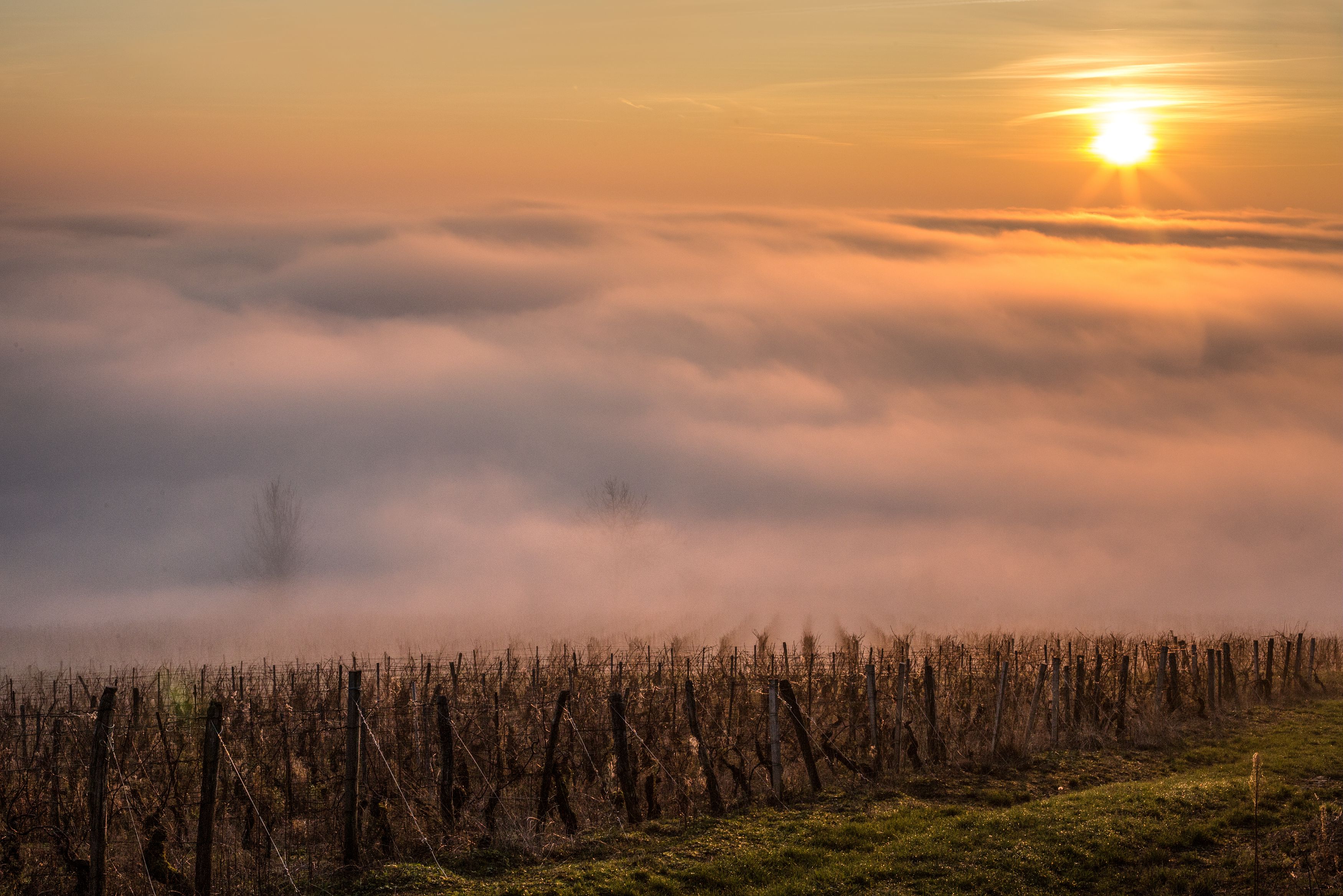 In Vézelay the sun sets over the Sainte-Madeleine basilica, a UNESCO World Heritage feature, as hot-air balloons cast their shadows on the slopes of the Eternal Hill.