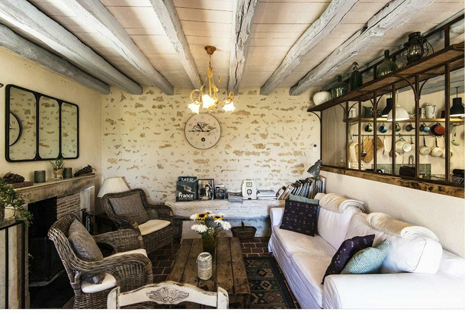 In the heart of the property, a fully renovated self-contained gîte accessed either via an outside staircase or from the rear of the gîte via a natural ramp with no stairs: large living room (possibility of sleeping 2 extra people in the sofa bed), kitchen opening onto a large room with open fireplace, separate wc, Saracen vaulted staircase leading to the first floor where there are 2 bedrooms and a shower room (large Italian-style shower) and 2nd wc.
