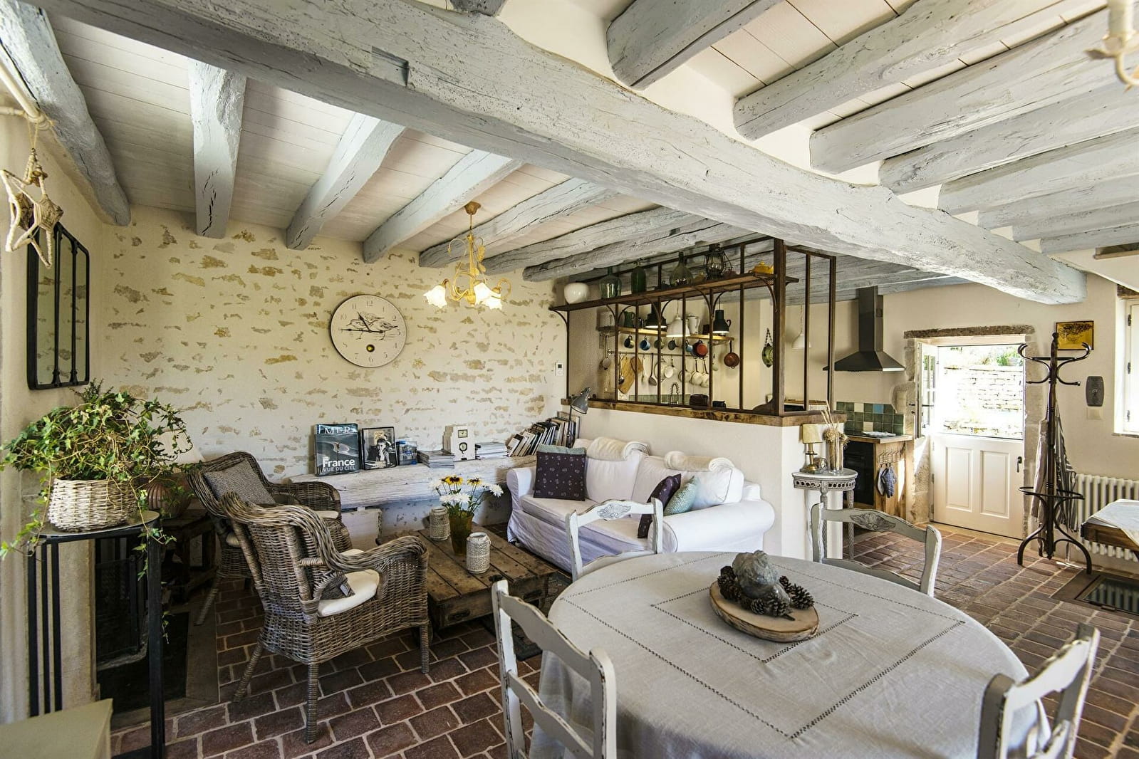 There is one bedroom with a 160x200 bed overlooking the Canal du Nivernais, which can be accessed via an outside staircase with a small balcony. The 2nd bedroom has 2 twin 90x190 beds. 2 vaulted cellars accessible either from the outside or from the inside of the main room via a motorised glass hatch: 1 cellar with washing machine, additional fridge with freezer, bread oven and stone fireplace with open hearth, another cellar that can be used for meals or tastings and storage for household items. A terrace with garden furniture and parasol, barbecue and lighting is located at the rear of the house, with no overlooked neighbours, and another terrace with garden furniture in front of the house. The access ramps lead to the 2,000 m² of landscaped, unfenced garden, from which you have an uninterrupted view of the Canal du Nivernais and the rooftops of the village. At the bottom of the garden is a large, protected well, where you will find an orientation table overlooking the foothills of the Morvan. 2 private, protected parking spaces. It is also possible to sleep an additional 2 people in an atypical mini gîte annex with kitchen area, lounge, 160x200 bed on the mezzanine and shower room, 2 terraces - please contact the owner directly for details. Adult and teen bikes for hire.