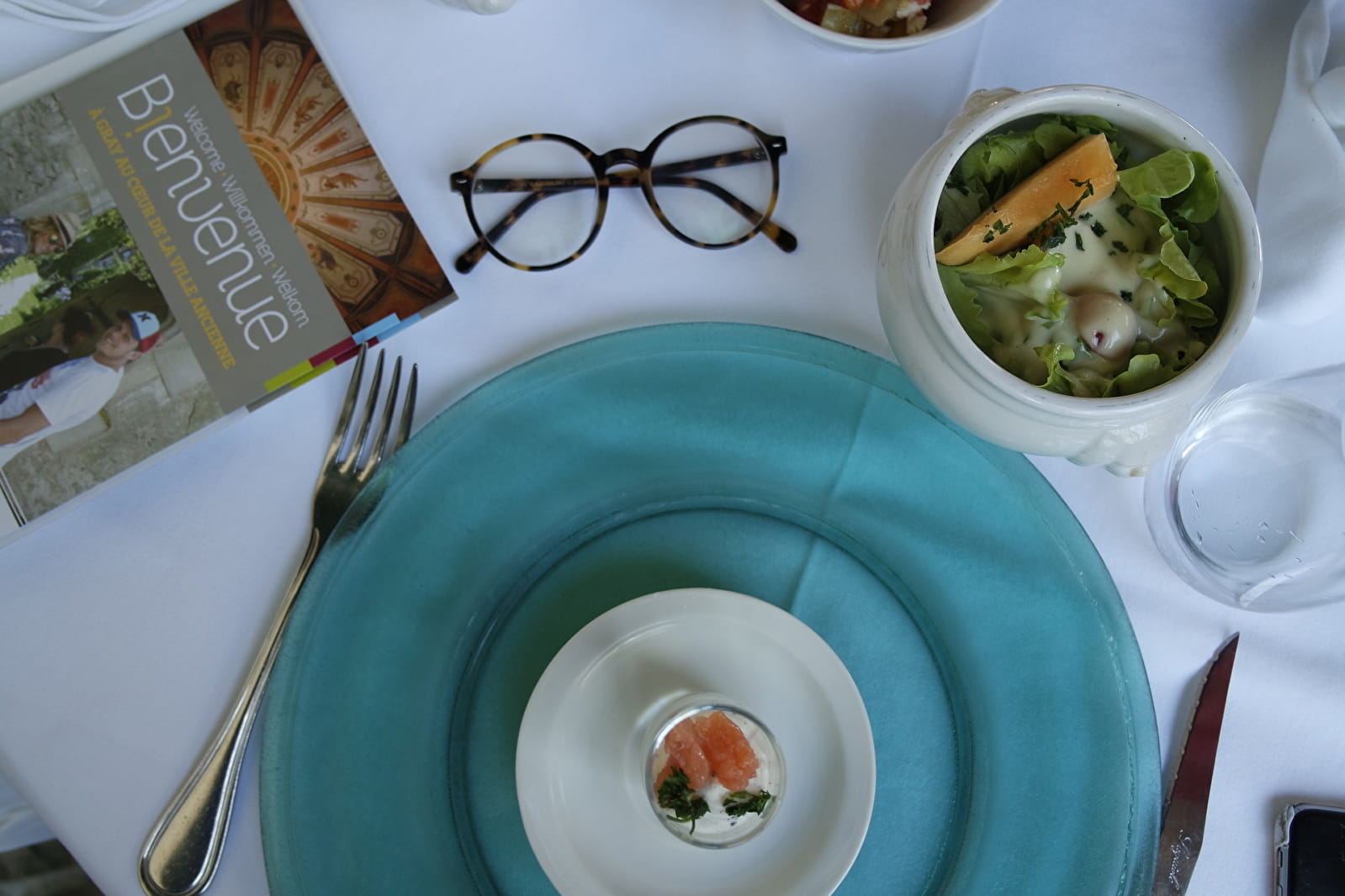 The glassed-in panoramic room can also accommodate 60 diners, overlooking the Saône and the stone bridge of Gray.
