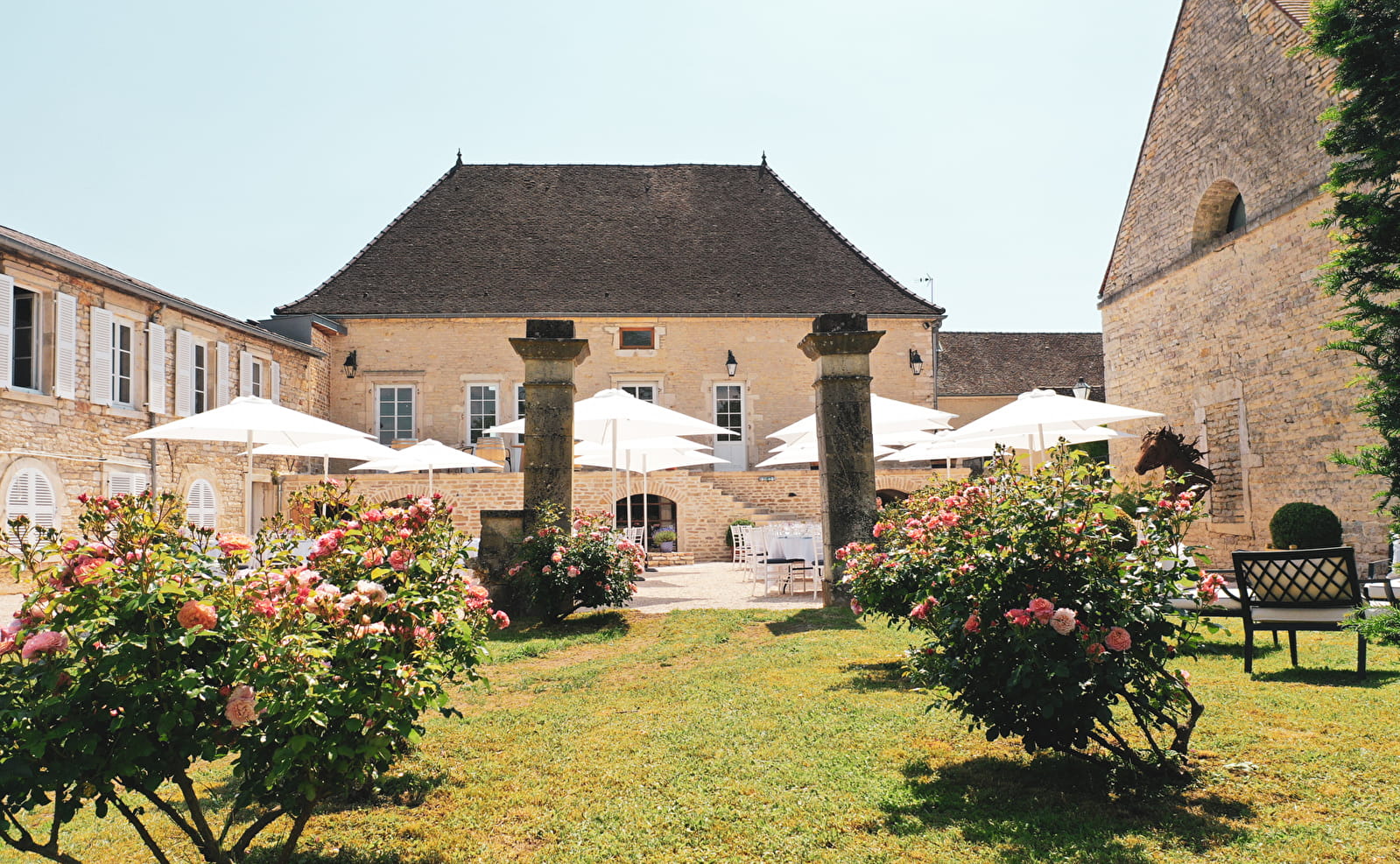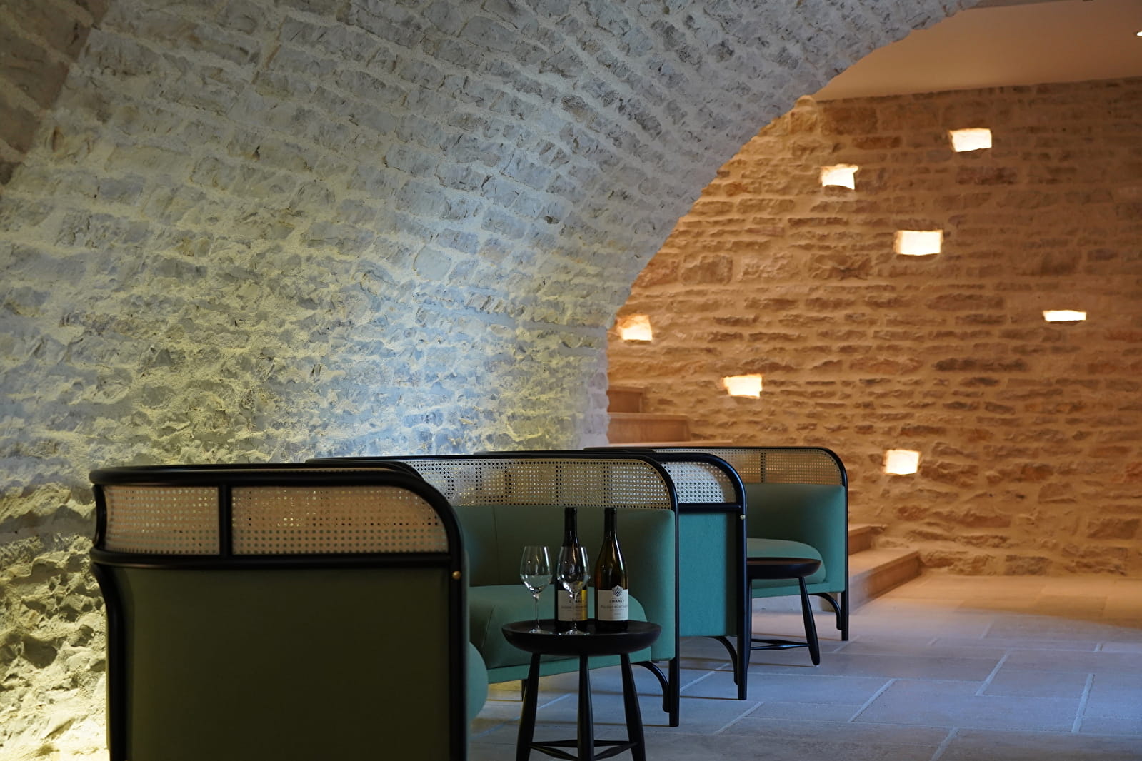 The Maison Chanzy welcomes you to a magnificent cellar built of white Burgundy stone and entirely renovated, with Cistercian-style vaults dating back to the 16th century. This cellar, steeped in history, opens onto a magnificent terrace and garden with a view of the Montrachet hillsides, in the heart of the vineyards of the most prestigious of Burgundy's appellations.